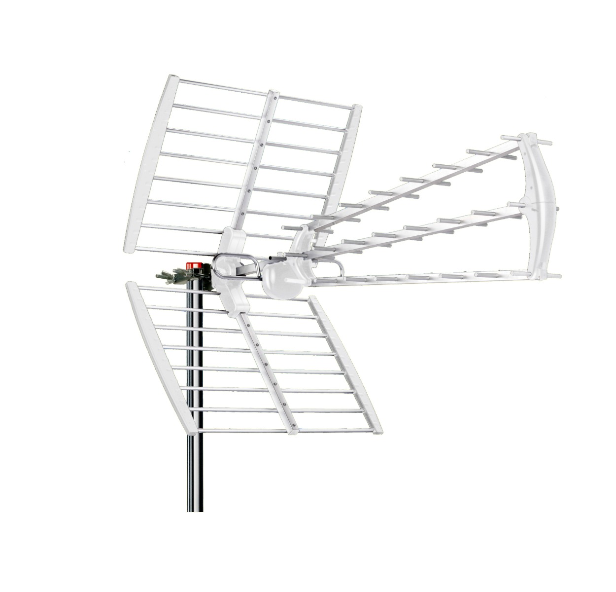 Τριπλή LTE κεραία UHF • Αλουμινίου • Gain: 18 dBi • Απόρριψη σήματος: 27 dB • Συχνότητα: 470-694 MHz • Αριθμός στοιχείων: 43 • Γωνία ανοίγματος: 2 x 27 º • Μέγιστη Διάμετρος: 60 mm • Μήκος: 1,05 m • Βάρος: 1.6 kg • Connector τύπου: F • Λευκού χρώματος • Συσκευασία κουτί