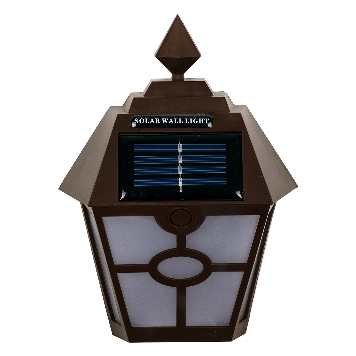 GloboStar® 71493 Αυτόνομο Ηλιακό Φωτιστικό Τοίχου Καφέ LED SMD 1W 40lm με Ενσωματωμένη Μπαταρία 600mAh – Φωτοβολταϊκό Πάνελ με Αισθητήρα Ημέρας-Νύχτας IP65 Ψυχρό Λευκό 6000K
