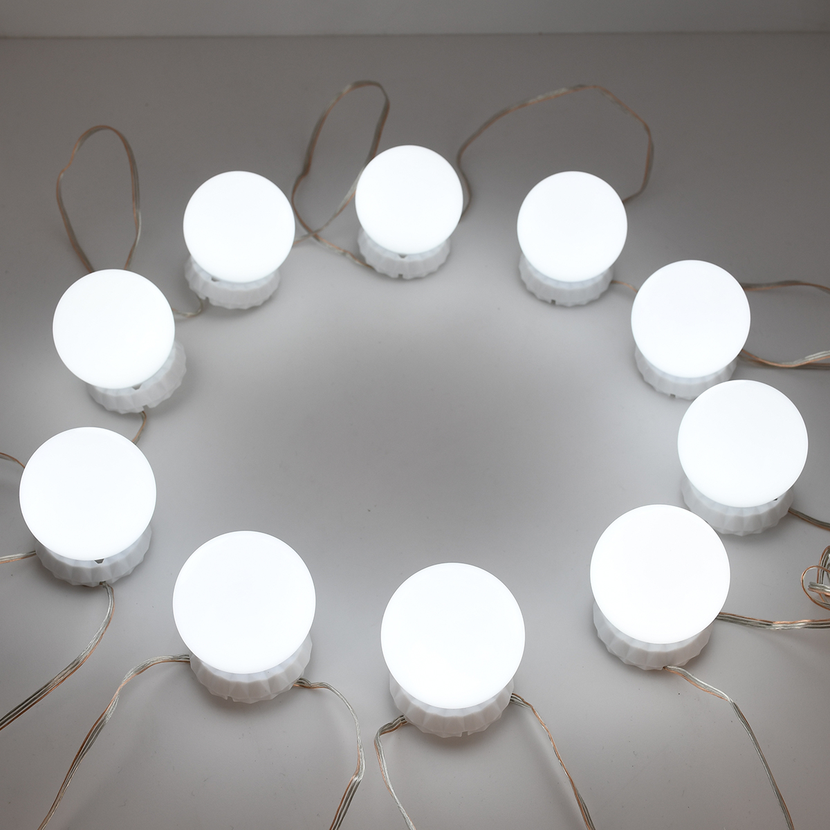 GloboStar® 79047 Φωτιστικό Γιρλάντα με 10 Γλομπάκια για Μακιγιάζ – Καθρέπτη LED 8W 800lm DC 5V με Καλώδιο Τροφοδοσίας USB – Ενσωματωμένο Χειριστήριο Εναλλαγής Χρωμάτων & USB Wall Adapter Αδιάβροχο IP54 CCT Θερμό 2700K έως Ψυχρό 6000K Dimmable
