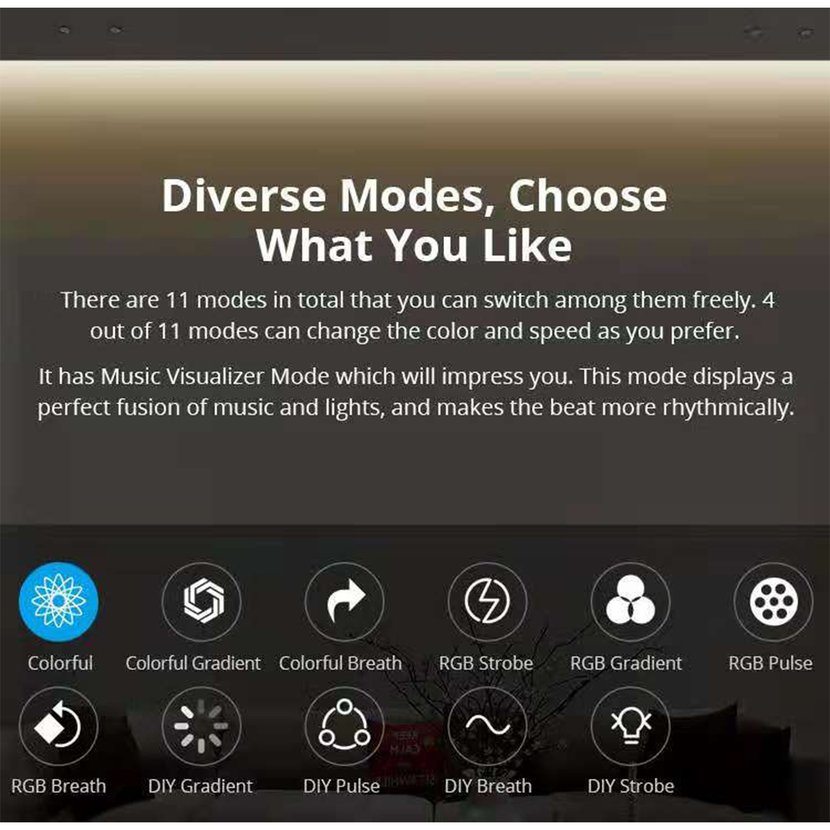 Extra Informations – Επιπλέον Πληροφορίες : The light strip comes with 16.4 feet-long and 30 LEDs on every 3.3 feet, which is enough to surround your TV wall and cabinet to provide the illuminated accent. With 16 millions color options choose from eWeLink app you can go from red to any color you like. The included 24-key remote controller gives you one more way to personalize your desired lighting needs, and you can dim or brighten it from 1% to 100%. 11 pre-set modes can be chosen that helps you directly access the space, from relaxation to entertainment. The easy-to-stick LED light strip can be free to cut to match any of your space with the customized length.