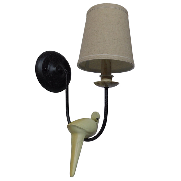 GloboStar® DOVE 01084 Vintage Φωτιστικό Τοίχου Απλίκα Μονόφωτο Μαύρο Μεταλλικό με Υφασμάτινο Μπεζ Καπέλο Φ16 x Μ35 x Π16 x Υ45cm