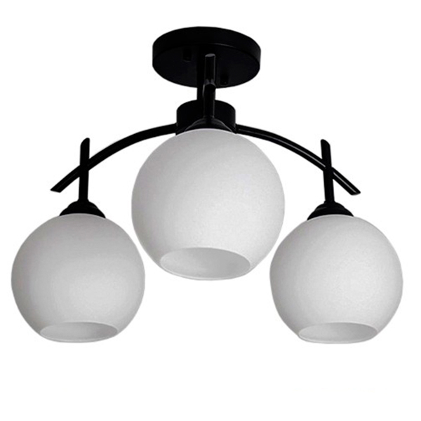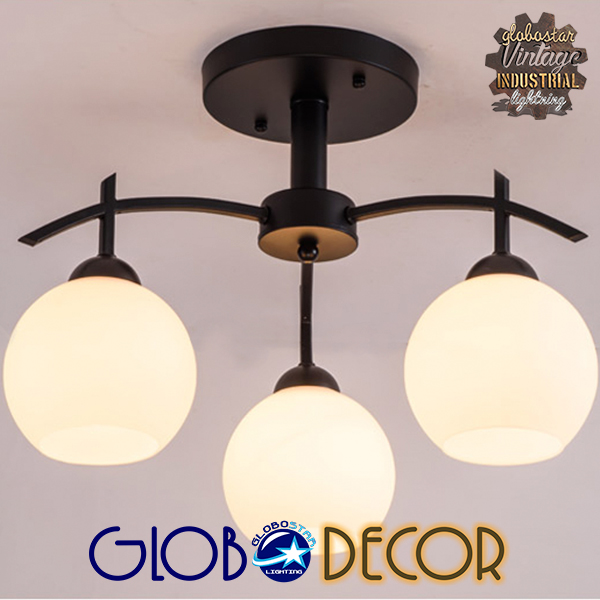 GloboStar® LUNA 01087 Μοντέρνο Φωτιστικό Οροφής Τρίφωτο Μαύρο Μεταλλικό με Λευκό Γυαλί Φ45 x Y39cm