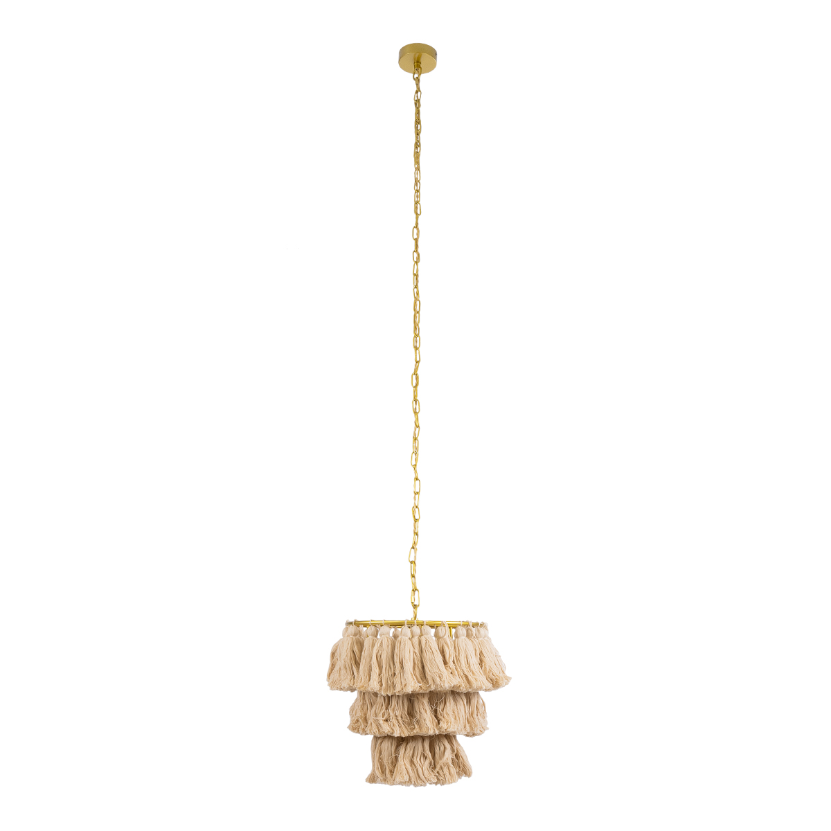 GloboStar® MISSOULA 02084 Boho Κρεμαστό Φωτιστικό Οροφής Μονόφωτο 1 x E27 AC220-240V IP20 – Φ30 x Υ40cm – Μπεζ Λεπτό Νήμα Βαμβακερό και Χρυσό Μεταλλικό Πλέγμα – 5 Χρόνια Εγγύηση