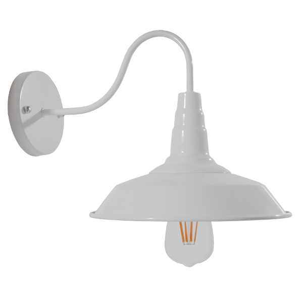 GloboStar® SORD 01066 Vintage Industrial Φωτιστικό Τοίχου Απλίκα Μονόφωτο Λευκό Μεταλλικό Καμπάνα Φ26 x Μ37 x Π26 x Υ32cm