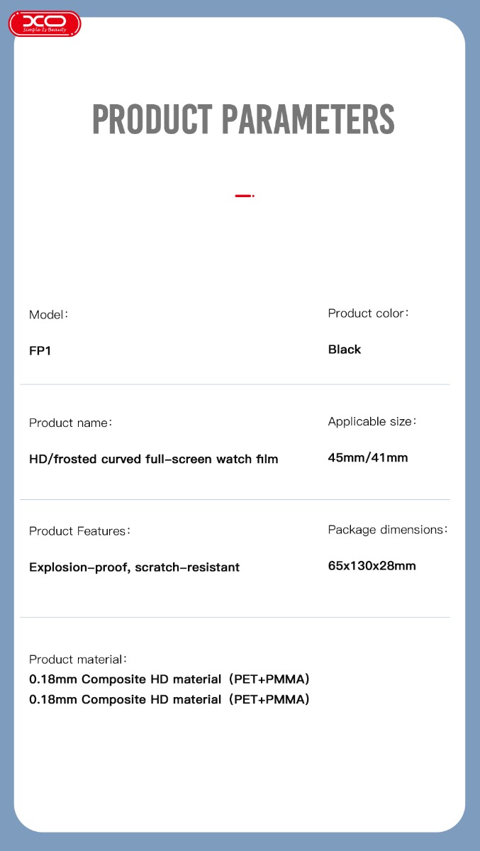 XO-FP1 3D Curved Πλήρης Οθόνη HD Soft Film Watch 41mm