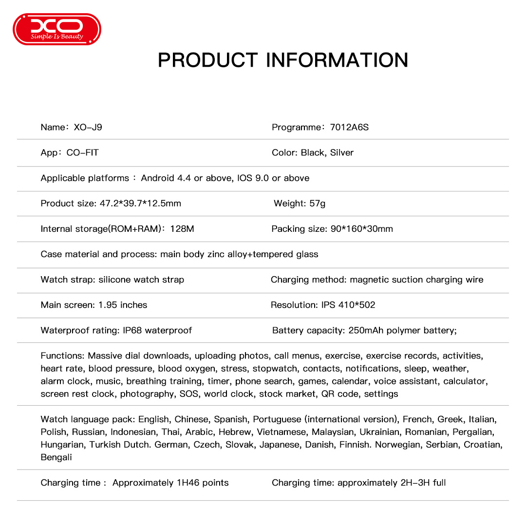 Massive dial download, upload photos, call menu (contacts, call records, dialing) Sports (running, indoor, walking, cycling, mountaineering, basketball, badminton, football, yoga, free exercise, customization) Sports records, activities, heart rate, blood pressure, blood oxygen, pressure, stopwatch, contacts, notifications, sleep, weather, alarm clock, music, breathing training, timer, find phone, games, calendar Voice assistant, calculator, breath screen clock, photography, SOS, world clock, stock market, QR code, settings (dial settings, universal (raise hand to light screen, do not disturb, password, breath screen clock, bedside clock mode) brightness, language, theme switching, shutdown, restart, factory recovery, about).