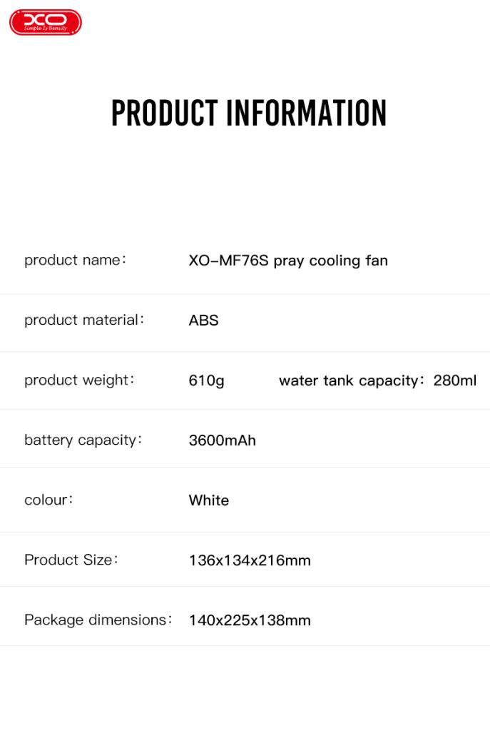 color: WhiteWater tank capacity: 280ml;Size: 136*133.5*216.2mm;Single net weight: 610gBattery capacity: 3600mAh;Function: with digital display, with automatic shaking head function