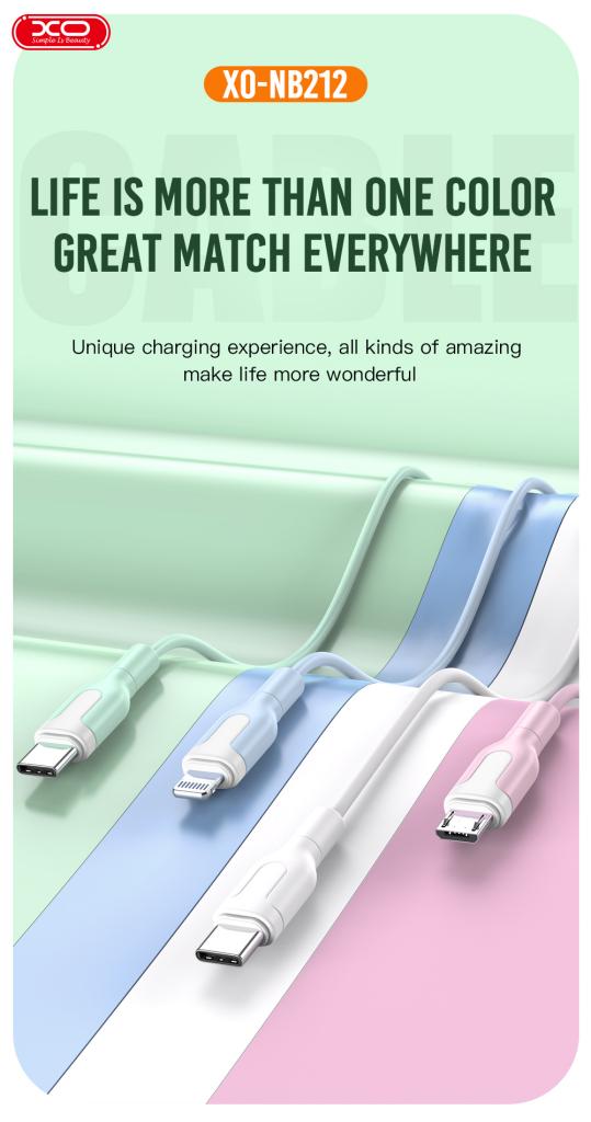 Cable length: 1 meter, weight: about 27.5±2g■Material: 60P outer mold/35P outer moldJoint material: short body 24HPBT material / white coreCore: OD: 3.8/4C (30*0.1*2C+10*0.1*2C)/PVC round copper compound copper 2.1A(MAX)■Function: Support charging and data transmission■Model production: Micro / Lightning/TYPE-C■Color: lake blue/pink/tender green/black/white